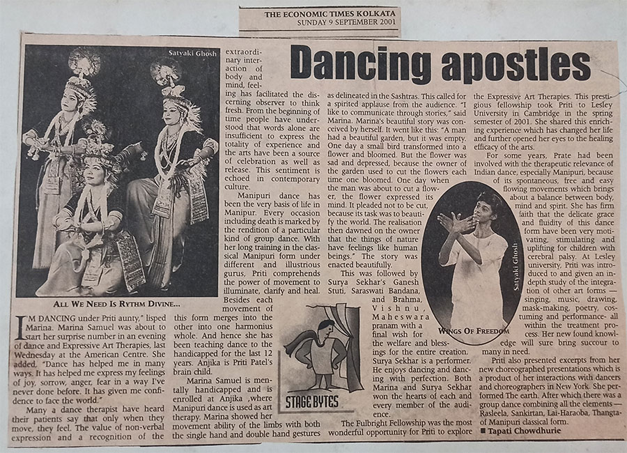Suryasekhar soared at “Anjika”, a school run by Manipuri danseuse Preeti Patel. An integrated programme, “with both spastic and ‘normal’ children”, termed ‘dance therapy’, was just what the doctor would have ordered for Suryashekhar.