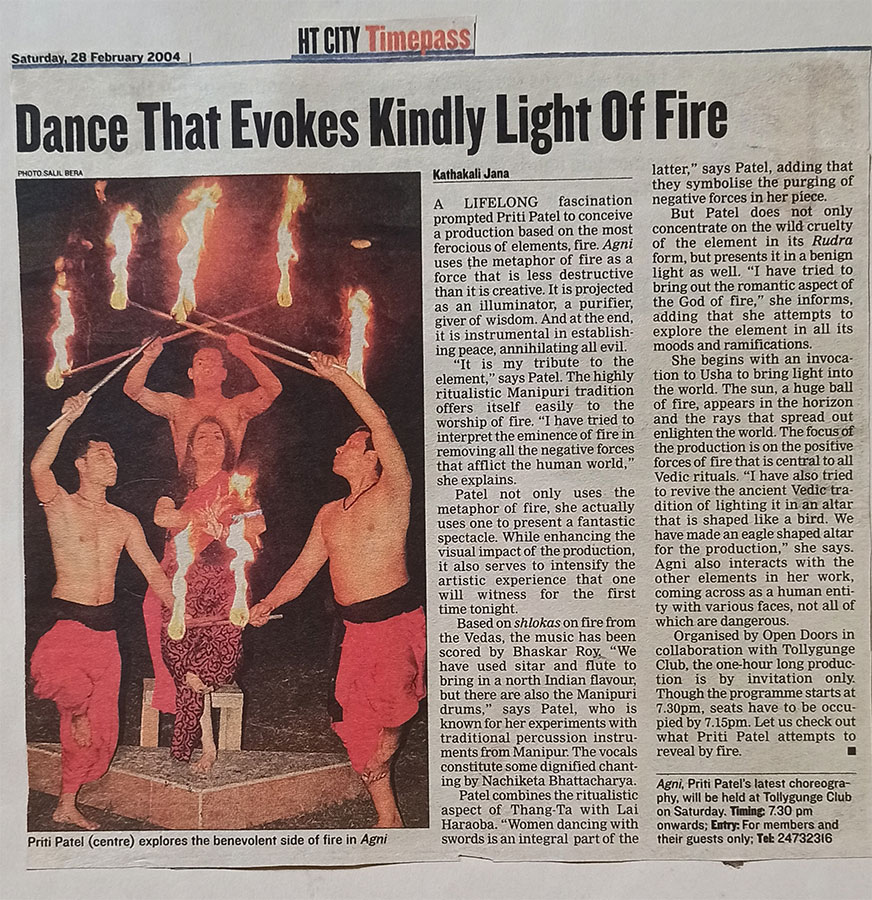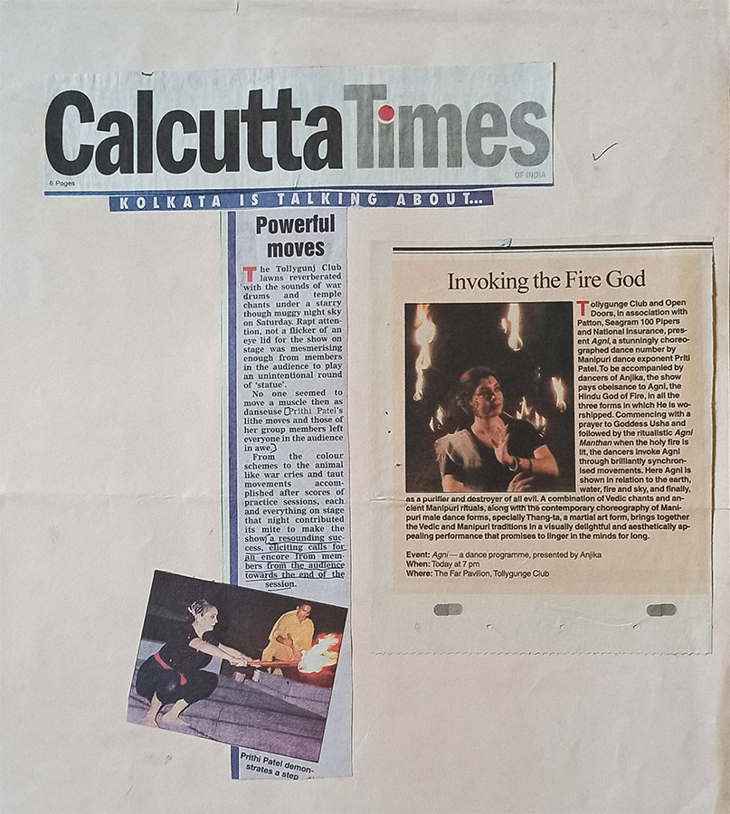 “Agni by Anjika...remains exciting for its spellbinding visual extravaganza of Manipuri martial arts, thang-ta...Preeti Patel’s stunning choreography and concept.”
