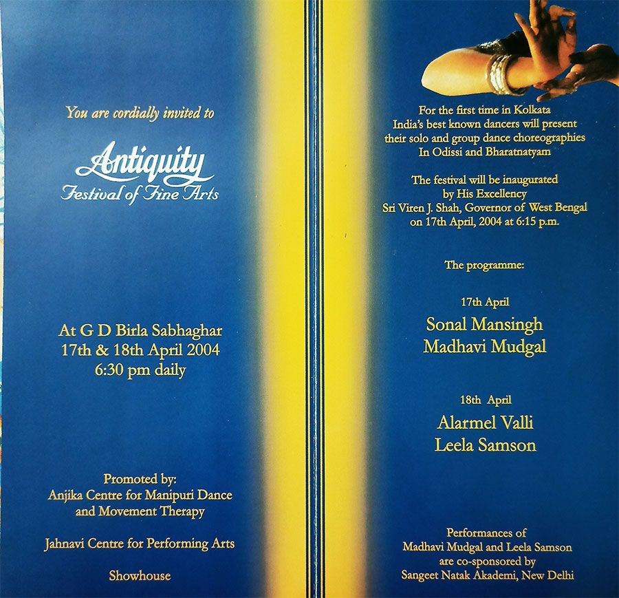 “Two-day Antiquity festival of Fine Arts—Kalpana...conceived by Priti Patel (a distinguished Manipuri dancer) and promoted by the Anjika Centre for Manipuri Dance and Movement Therapy.”
