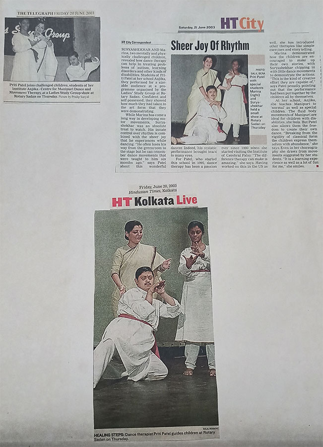 Suryasekhar soared at “Anjika”, a school run by Manipuri danseuse Preeti Patel. An integrated programme, “with both spastic and ‘normal’ children”, termed ‘dance therapy’, was just what the doctor would have ordered for Suryashekhar.